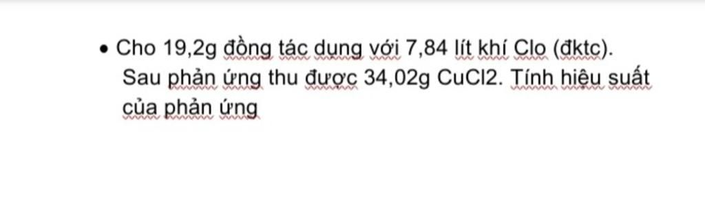 {n_{Cu}} < {n_{C{l_2}}} \Rightarrow C{l_2} \text{ dư, hiệu suất tính theo Cu }\\