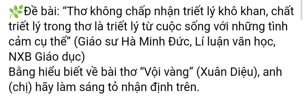 *Đề bài: “Thơ không chấp nhận triết lý khô khan, chất triết lý trong thơ là triết lý từ cuộc sống với những tình cảm cụ thể" (Giáo sư Hà Minh Đức, Lí luận