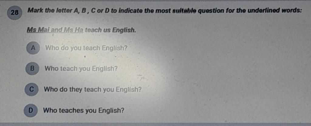 ⇒ từ để hỏi là Who