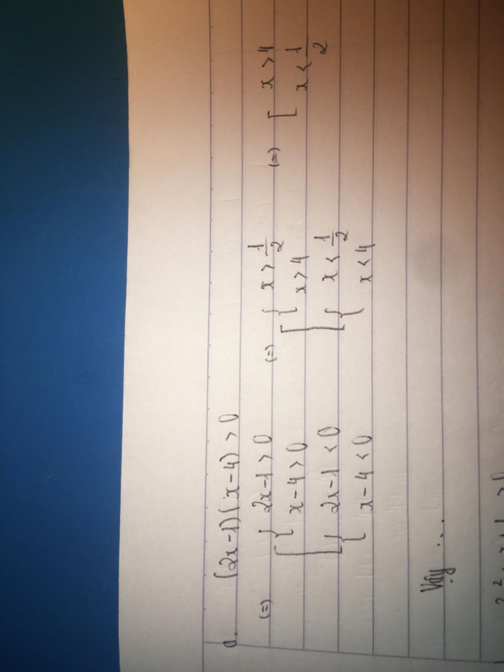 Vậy `f(x)>0` khi `x \in (-∞;\frac{1}{2})∪(4;+∞)`