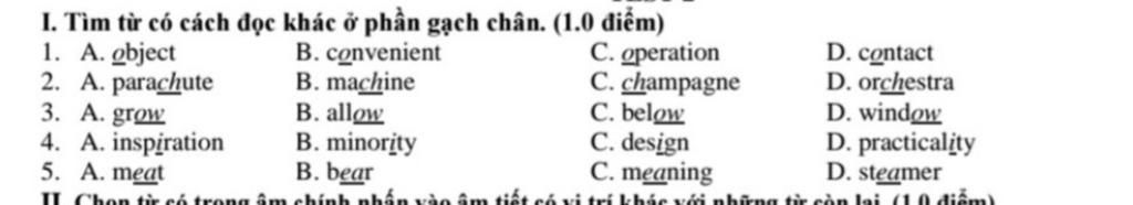 `1.B`, ra âm /ə/ còn lại là /ɒ/