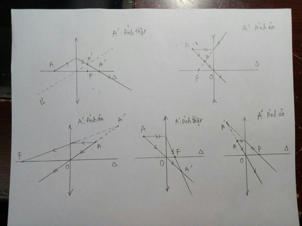 Chú ý: ảnh thật nằm khác phía với vật so với thấu kính, ảnh ảo nằm cùng phía với vật so với thấu kính.