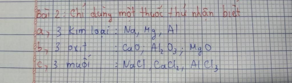 Giải giúp mình bài 2 với ạ. Rõ ràng nha. Mình cảm ơnbai 12: Chi ating mot thuoc thu nnôn biet a 3 Kim lo ai 3 brt Na, Mg, Al