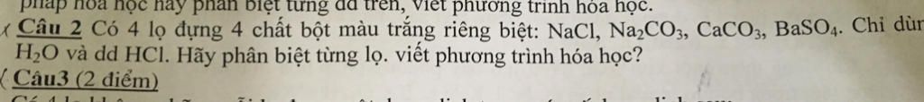 - Không tan là $CaCO_3$ và $BaSO_4$(nhóm 2)