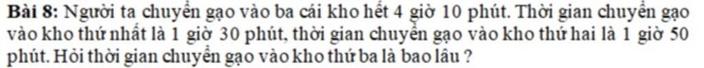 Số thời gian chuyển gạo chuyển vào kho ba là :
