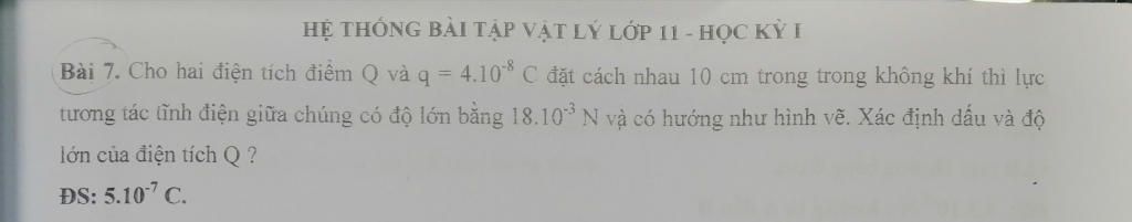 Do không có hình vẽ nên không xác định được chiều của lực và dấu của Q