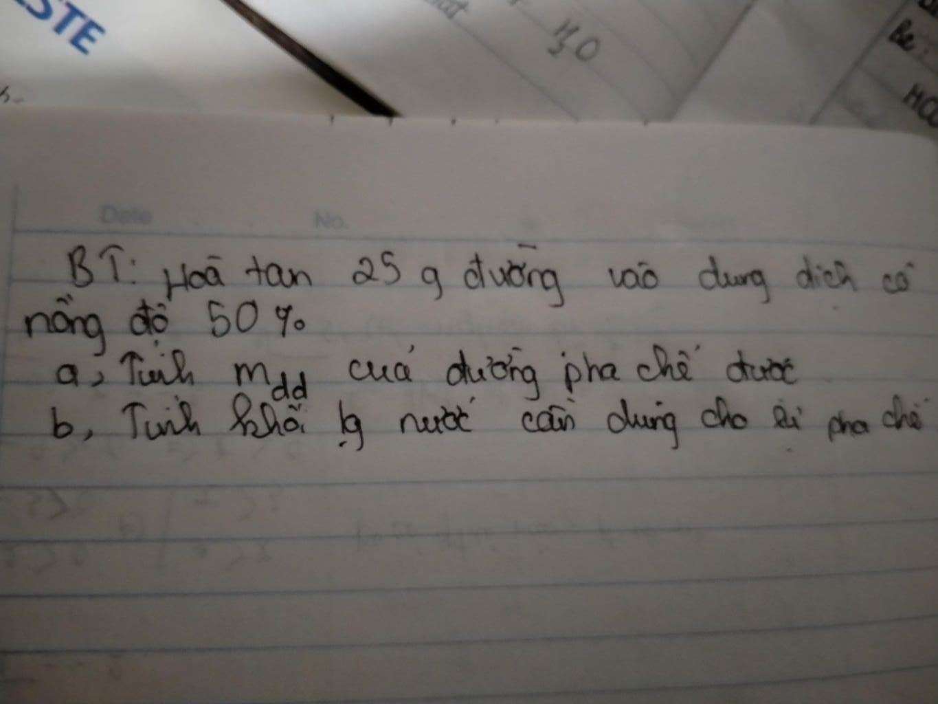 $m_{nước} =m_{dung\ dịch} - m_{đường} = 50 - 25 = 25(gam)$