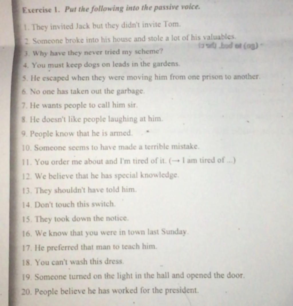 Exercise 1. Put the following into the passive voice.