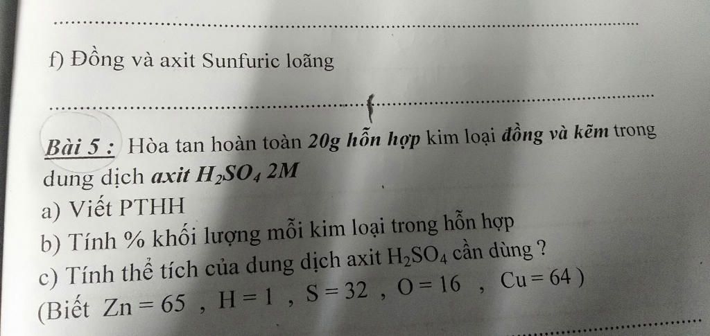 \% Zn = \dfrac{{6,5}}{{20}} \times 100\% = 32,5\% \\