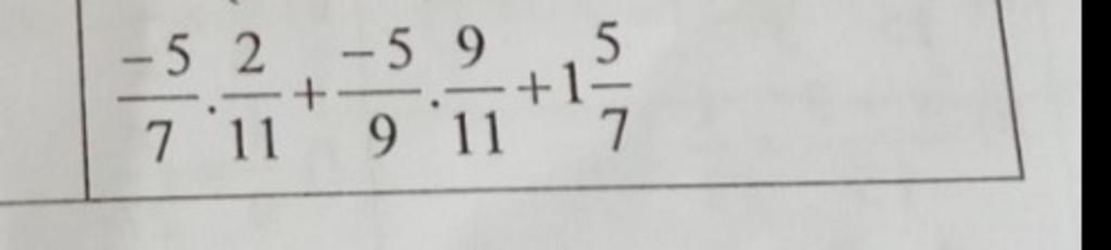 `=` $\dfrac{-5}{7}$ `. 2/11 +` $\dfrac{-5}{9}$ `. 9/11 + 12/7`