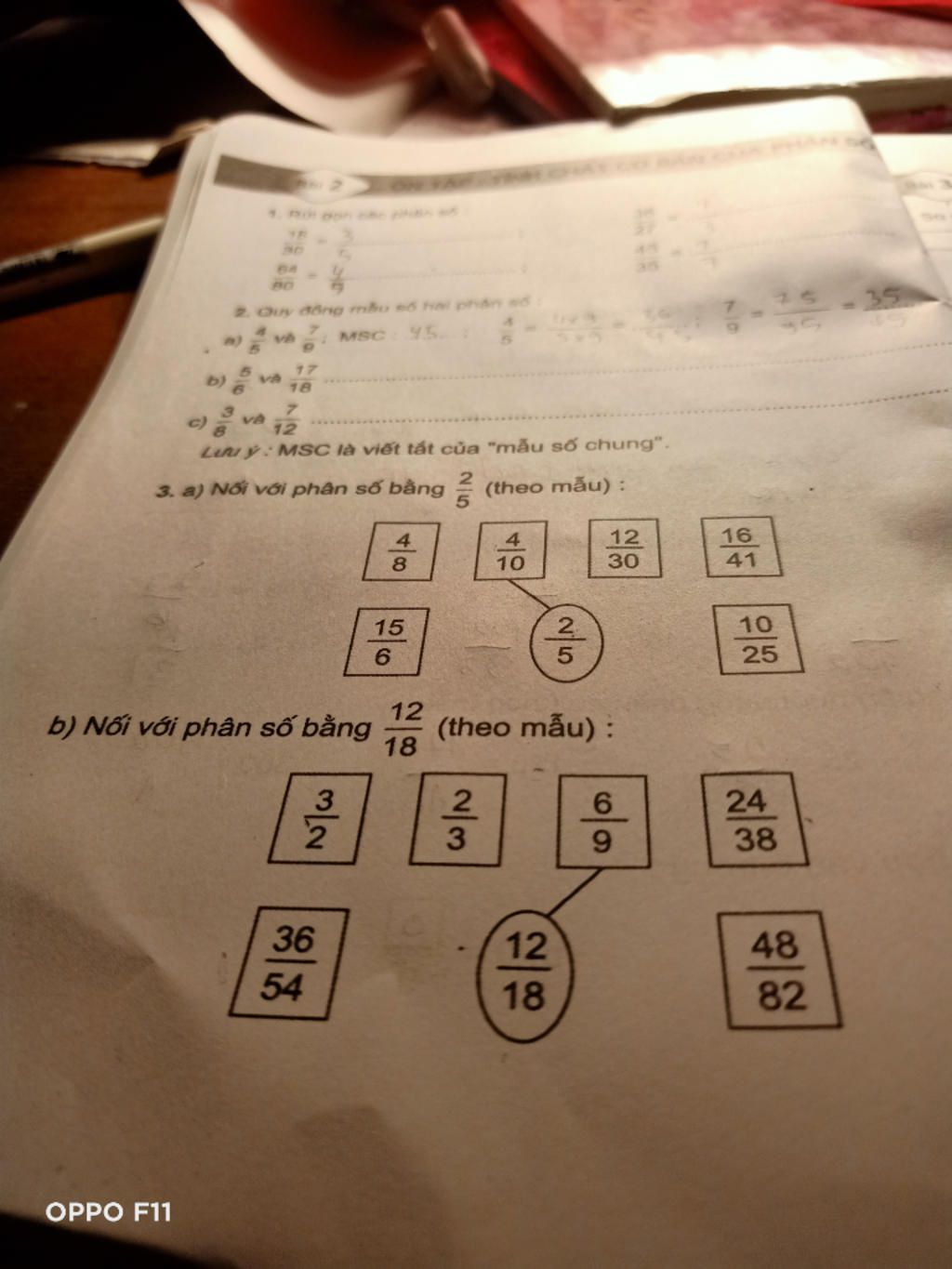 b)phân số bằng $\frac{12}{18}là:$ $\frac{2}{3};$ $\frac{36}{54}$
