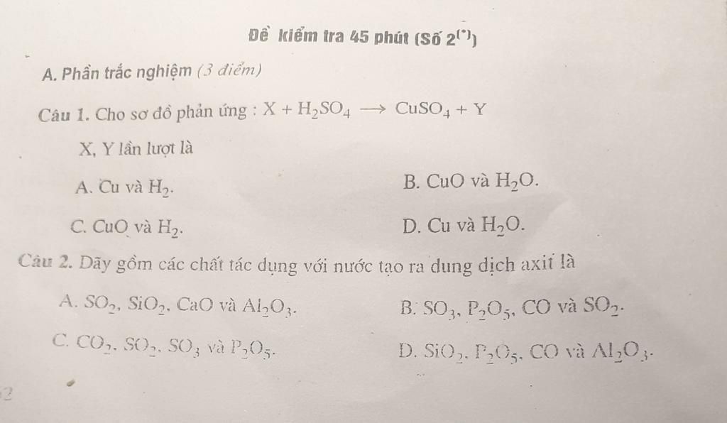 `->` cặp chất `X;Y` là `CuO ;H_2O`