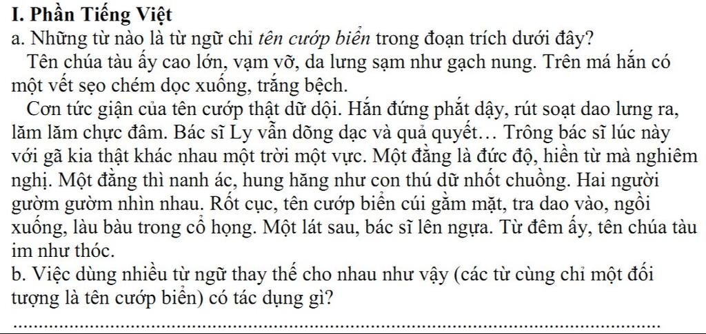 Việc dùng nhiều từ ngữ thay thế cho nhau như vậy có tác dụng nối và miêu tả tên cướp biển