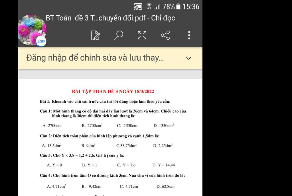 ( 26 + 64 ) x 30 : 2 = 1350 ( cm² )