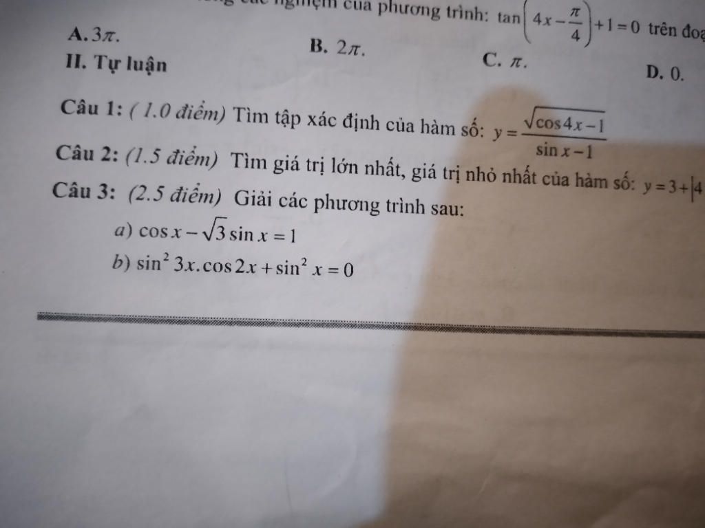 Mà `-1 \le cos x \le 1` nên `⇒ cos 4x \ne 1`