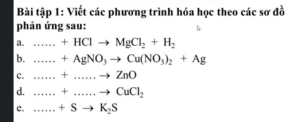 `a.Mg + 2HCl -> MgCl_2 + H_2↑`