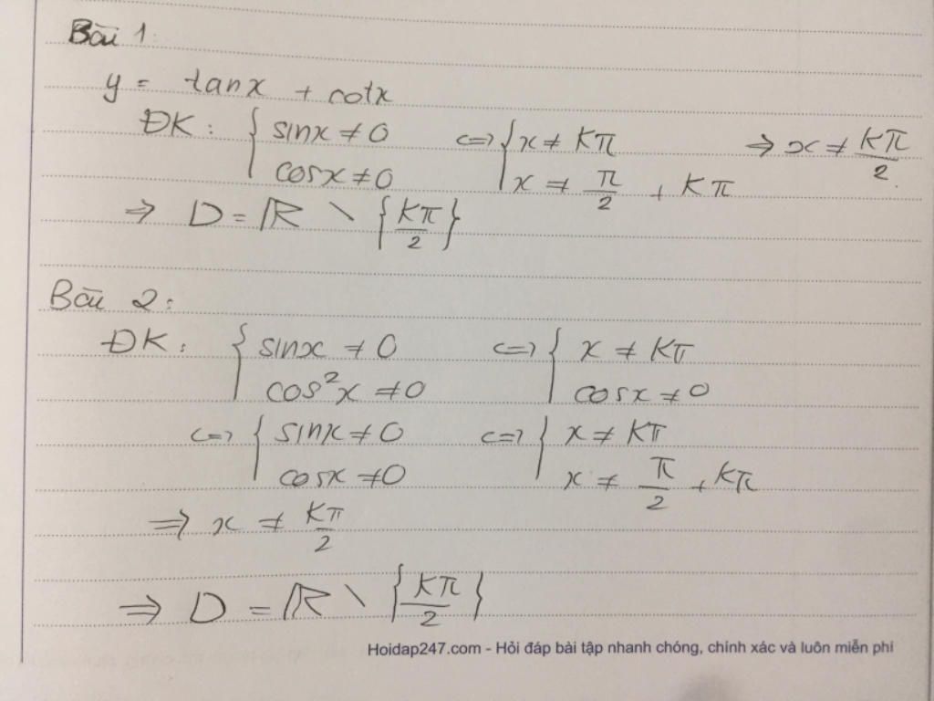 B1:tìm txđ của hàm số y= tan x + cot x B2: tìm txđ của hàm số y =cot x + 1/cos² x câu hỏi 1225824 - hoctapsgk.com