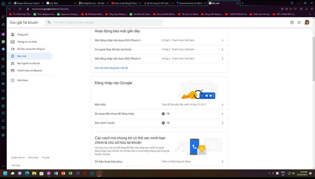 Sao mik ko thấy cái phần Mã Bảo Mật đâu vậy mn, ai biết lấy mã bảo mật google trên máy tính thì giúp mik với ạO Zalo Web Dragon Bal Super Chap E X x HHoidap247