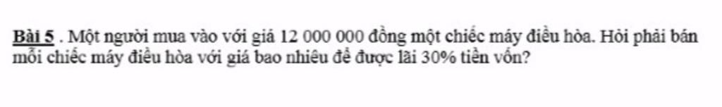 Phải bán mỗi chiếc máy điều hòa với giá số đồng để được lãi ` 30% ` tiền vốn là