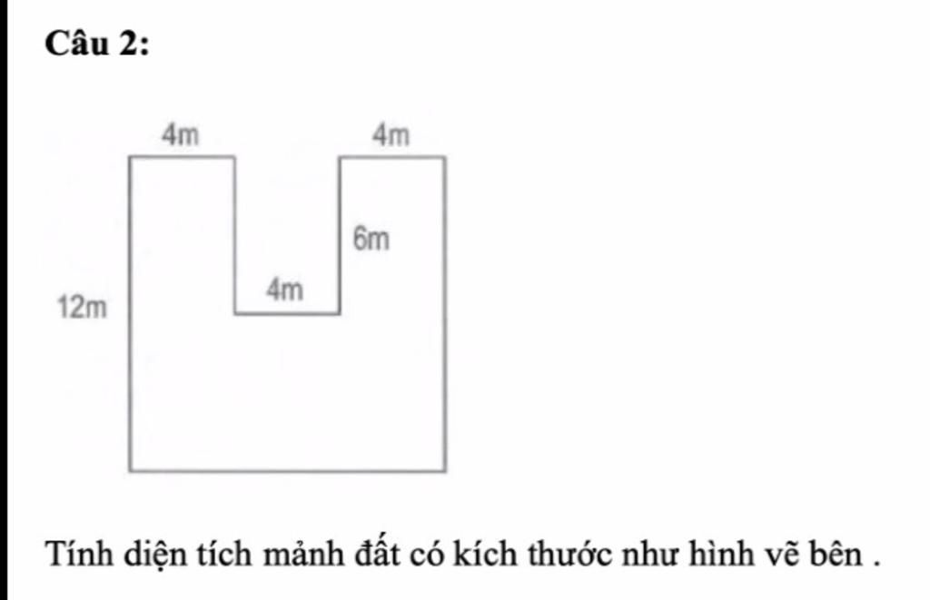 Diện tích mảnh đất hình chữ nhật `2` là: