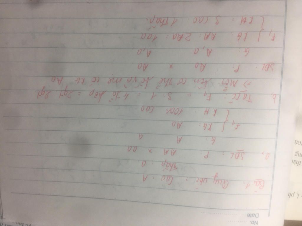 Bài 1, Ở đậu Hà Lan, thân cao trội hoàn toàn so với thân thấp. a, Cho 2 cây đậu thuần chủng thân cao lai với cây thân thấp thu được F1. Xác định tỉ lệ kiểu ge
