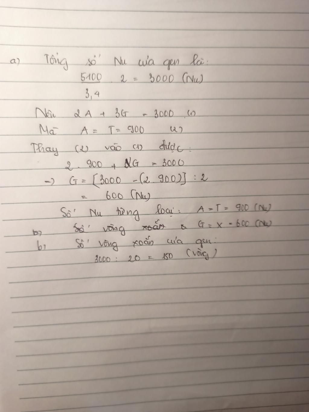 $5100 : 3,4 × 2 = 3000$ nucleotit