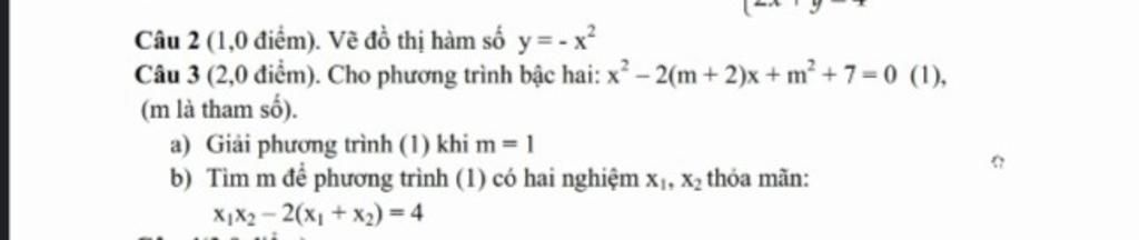 $*$ Vẽ đồ thị hàm số $y=-x^2$