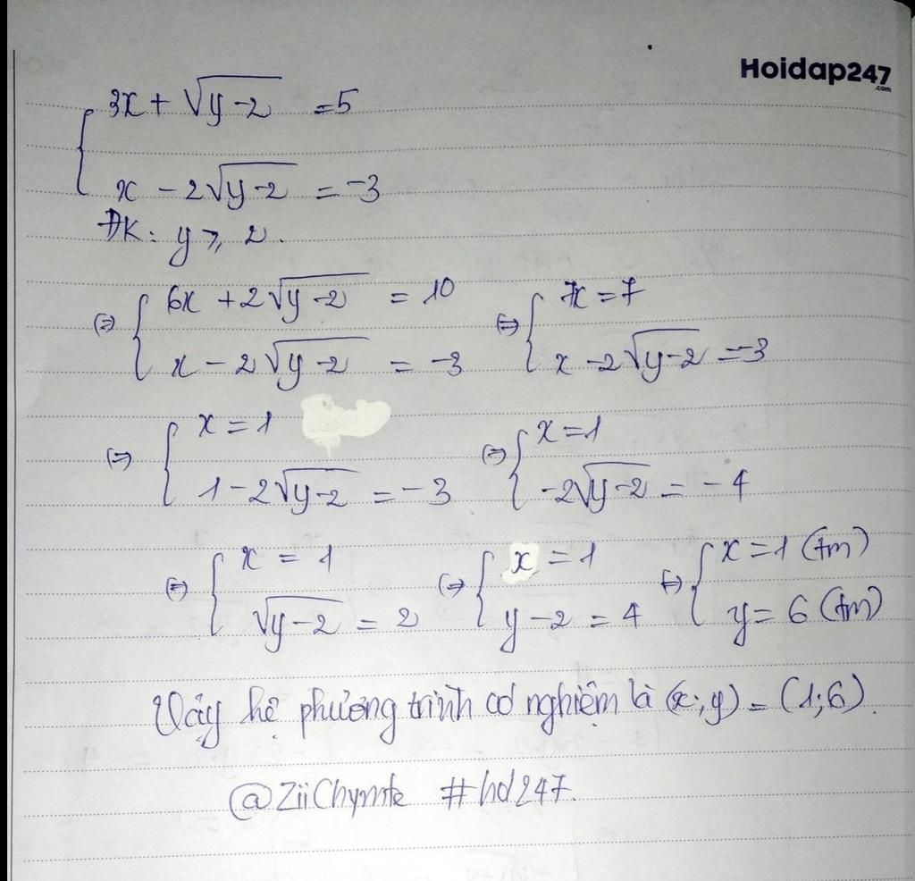 Vậy hệ phương trình có nghiệm `(x;y) = (1;6)`