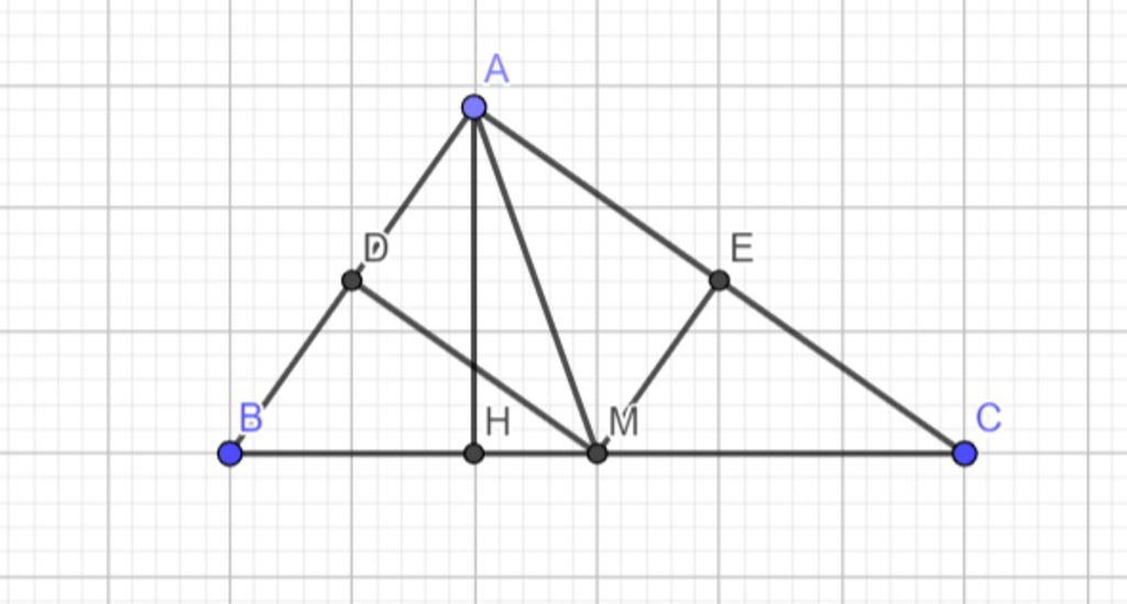 b.Ta có: $\Delta ABC$ vuông tại $A, M$ là trung điểm $BC$