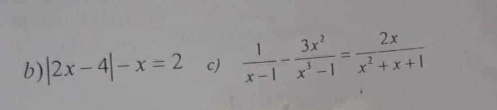 `c,` $\frac{1}{x-1}$`-` $\frac{3x^2}{x^3-1}$`=` $\frac{2x}{x^2+x+1}$