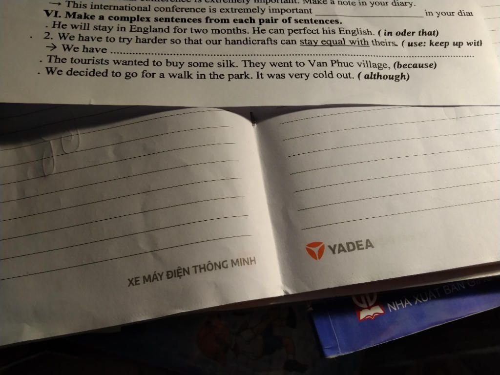 2. We have to try harder so that our handicrafts can keep up with theirs. ( keep up with= stay equal with)