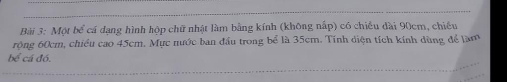 Diện tích xung quanh của bể cá là: