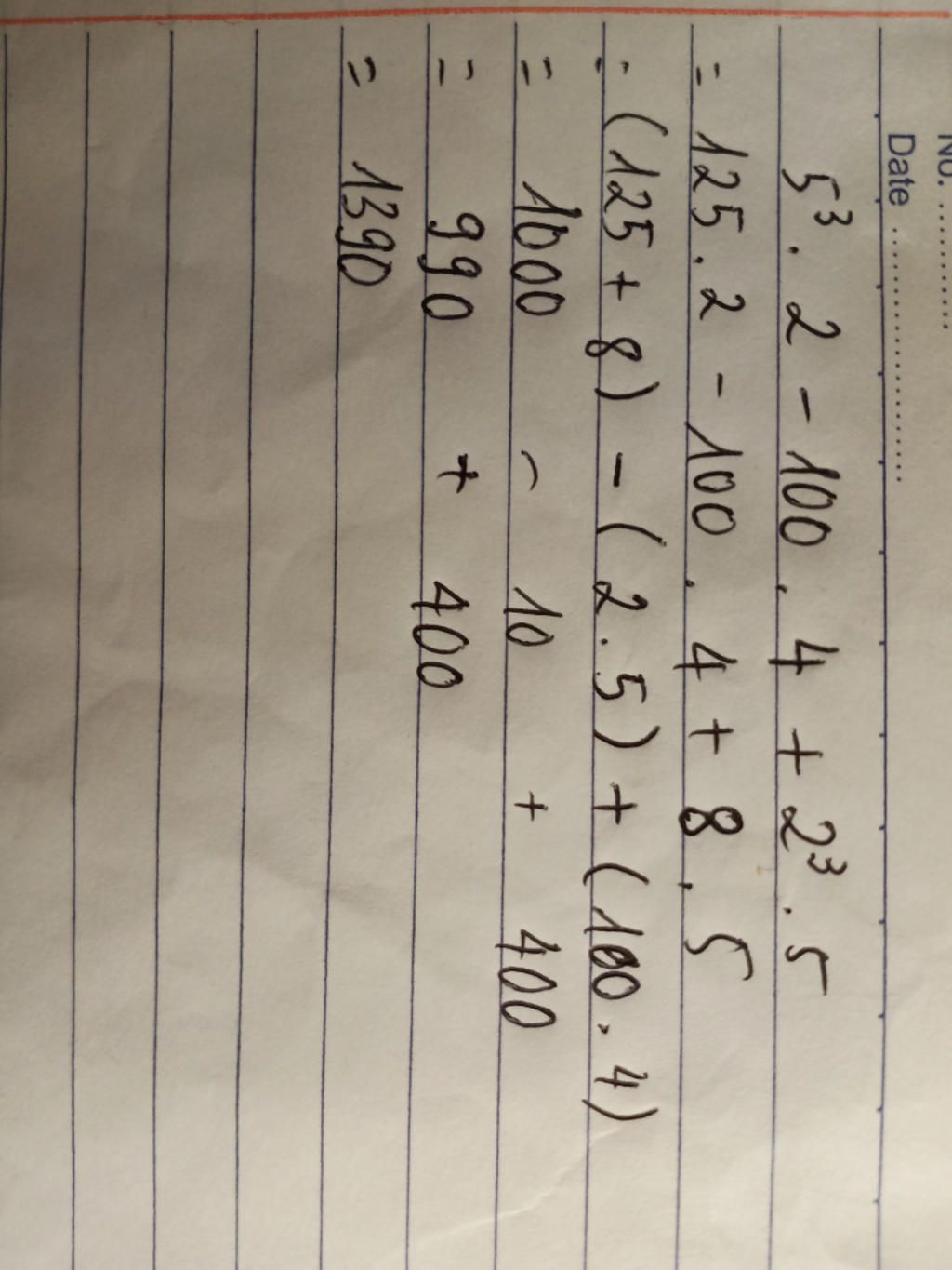 G, 5 mũ 3 x 2 - 100 : 4 + 2 mũ 3 x 5