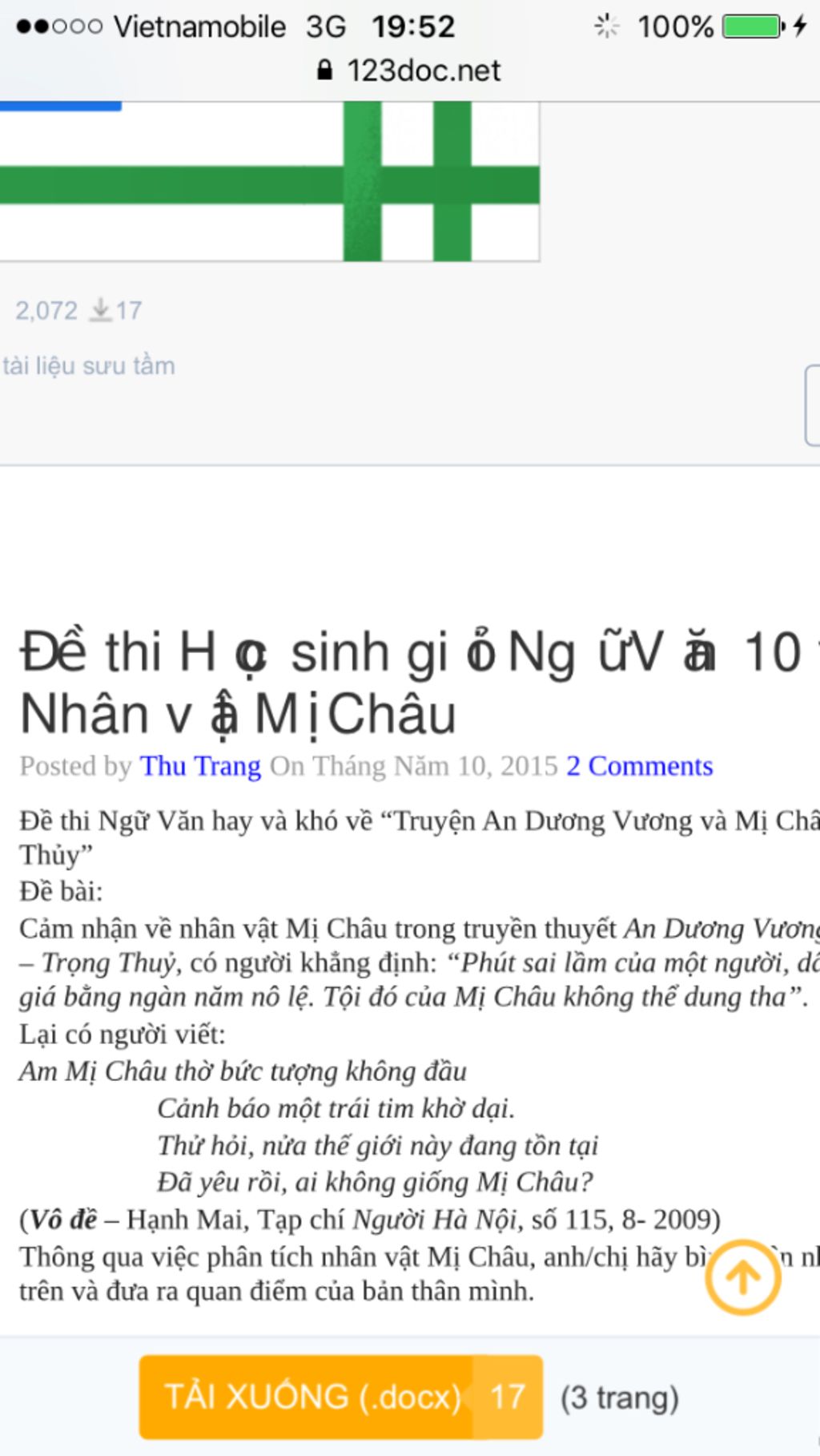 o00 Vietnamobile 3G 19:52 100% A 123doc.net %23 2,072 17 tài liệu sưu tầm Đề thi H ọ sinh gi ỏ Ng ữV ăn 10 Nhân v ậ MịChâu Posted by Thu Trang On Tháng Năm