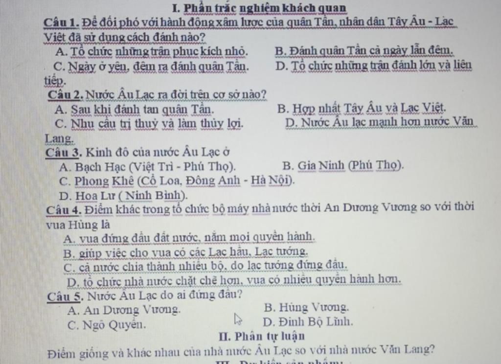 `(`*`)` Nước Âu Lạc do An Dương Vương đứng đầu