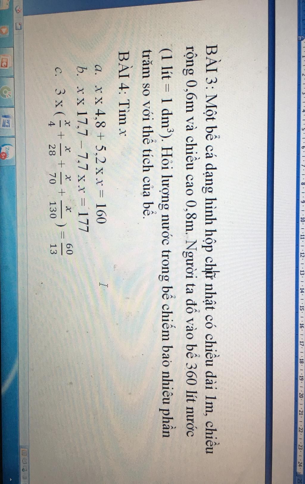 Lượng nước trong bể chiếm số phần trăm thể tích bể là :