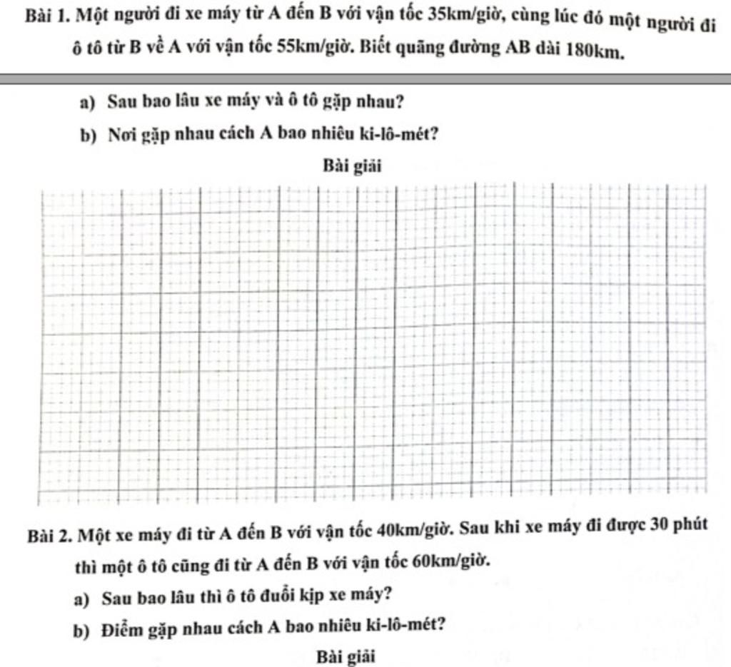 A) Sau mỗi giờ , cả ô tô và xe máy đi đc số quãng đường là :