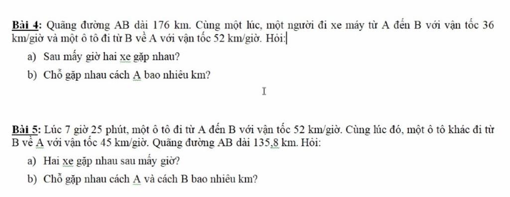 Hai xe gặp nhau lúc: