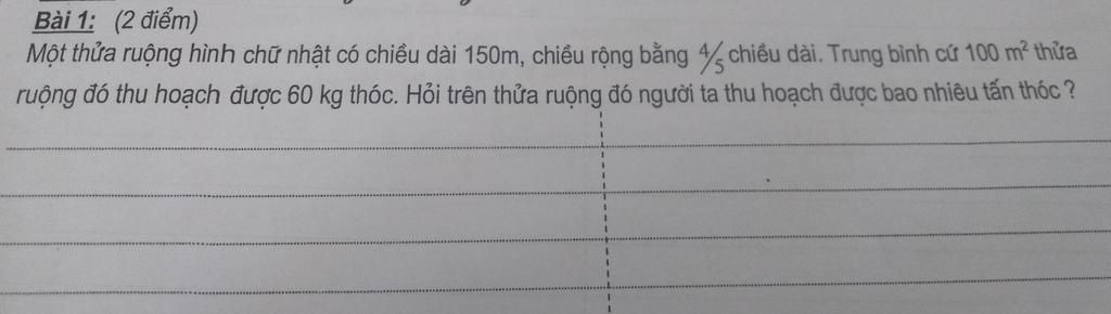 Trên thửa ruộng đó người ta thu hoạch được là :