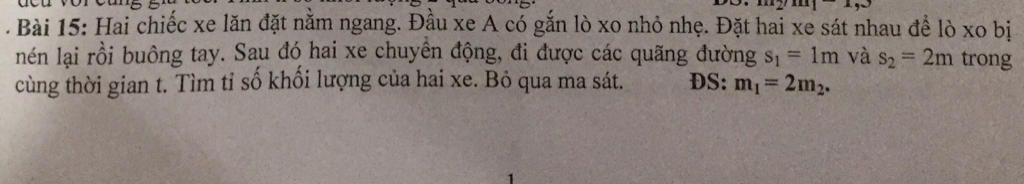 ${m_1}{v_1} - {m_2}{v_2} = 0 \Rightarrow \dfrac{{{m_1}}}{{{m_2}}} = \dfrac{{{v_2}}}{{{v_1}}} = 2 \Rightarrow {m_1} = 2{m_2}$