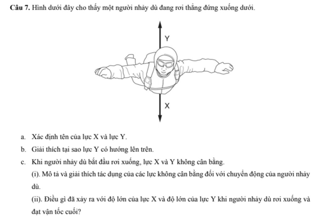 b, Vì $Y$ có tính cản trở chuyển động rơi xuống của người, nên có hướng ngược với hướng chuyển động