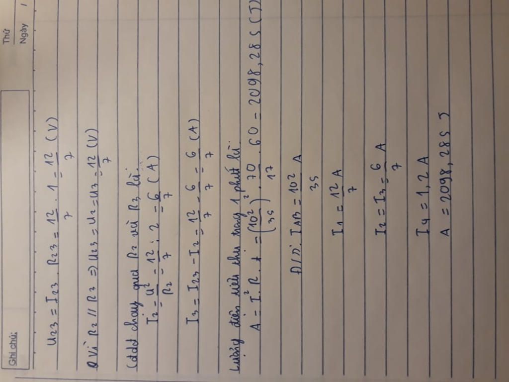 $⇒I_3=\dfrac{U_3}{R_3}=\dfrac{12}{7} : 2 = \dfrac{6}{7} (A)$