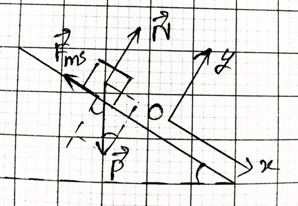 `\vec{P}+\vec{N}+\vec{F_{ms}}=m\vec{a}` (*)