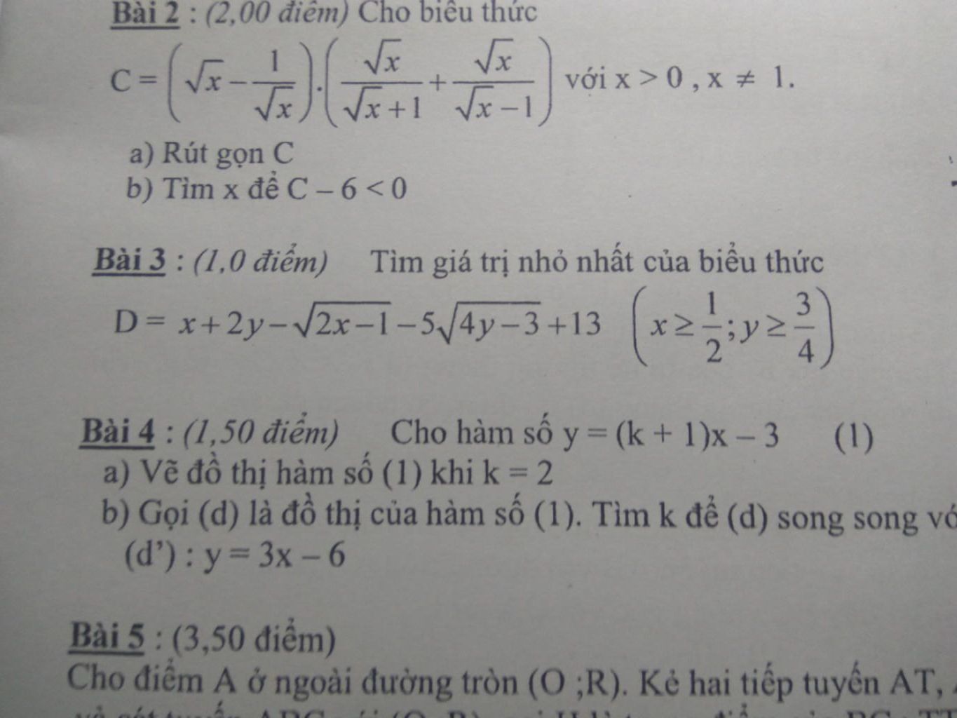 $ ⇒ GTNN$ của $D = 2 $ xảy ra khi: