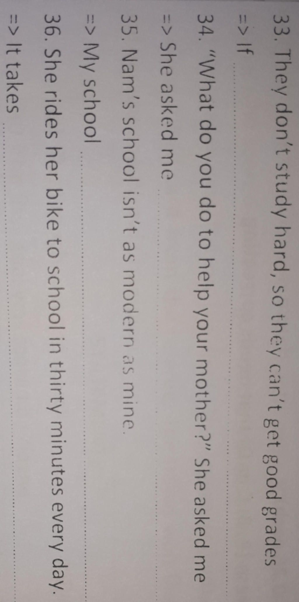 36. It takes her thirty minutes everyday to ride her bike to school.