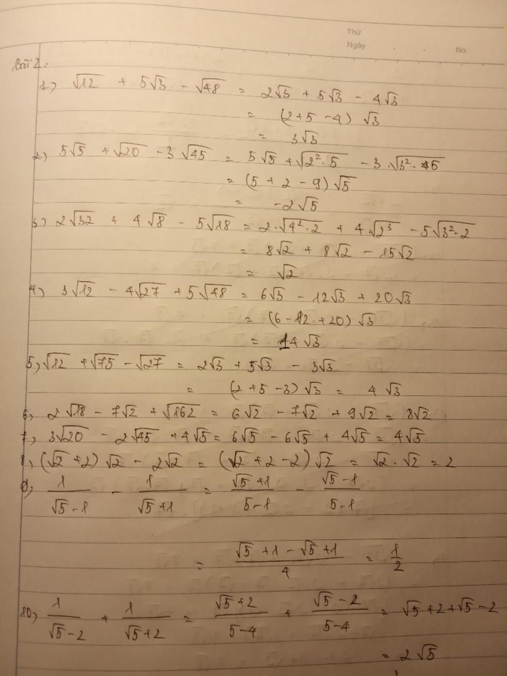2)5\sqrt 5 + 2\sqrt 5 - 3.3\sqrt 5 = - 2\sqrt 5 \\