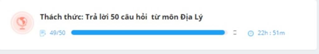 Thách thức: Trả lời 50 câu hỏi từ môn Địa Lý 49/50 O 22h :51m