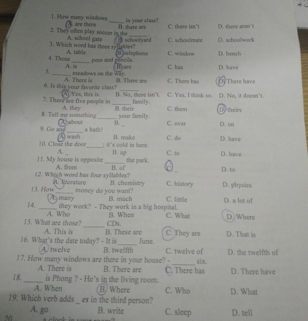 17. B( câu hỏi là are there-> câu trả lời là there are)