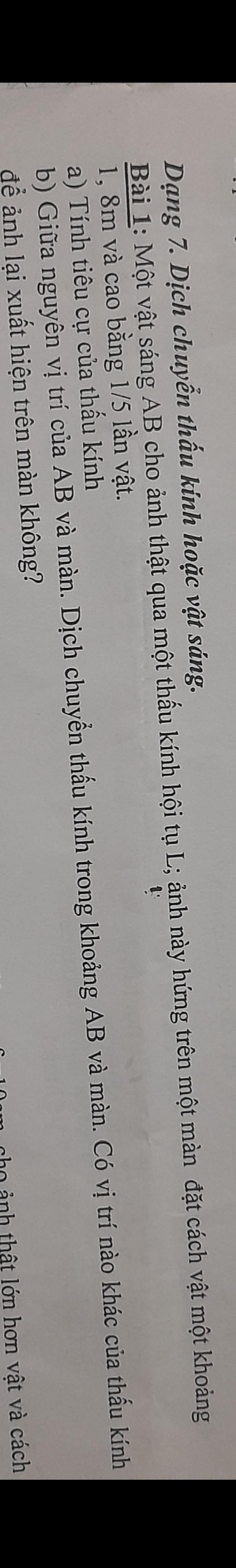 Vậy còn một vị trí nữa cho ảnh rõ nét trên màn, vị trí này cách thấu kính một khoảng 30cm
