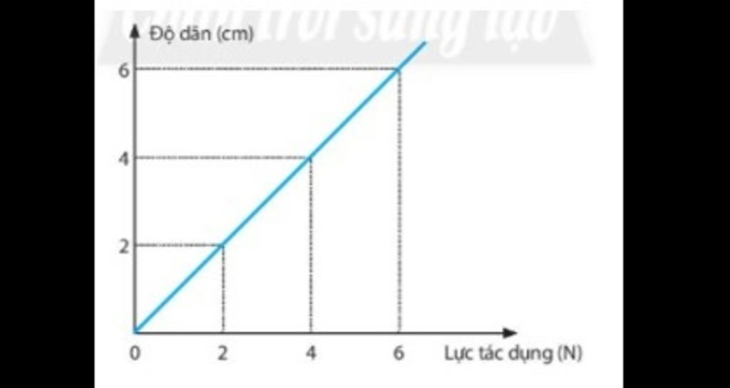 `c.` Khi lực tác dụng là `6 N` thì độ dãn của lò xo là `6 cm`